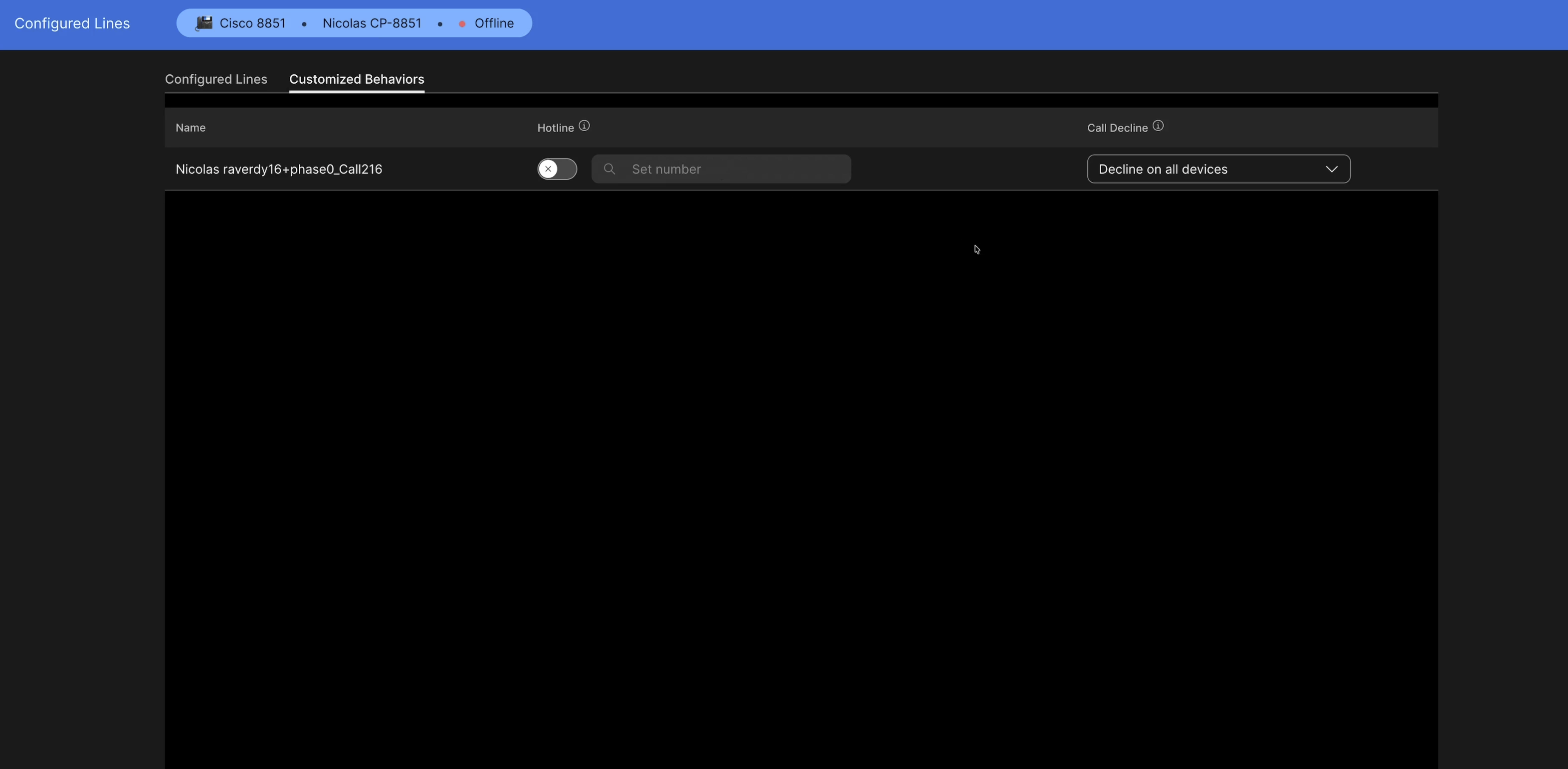 A hotline can be configured only on a desk phone, if its primary line is configured as a hotline.