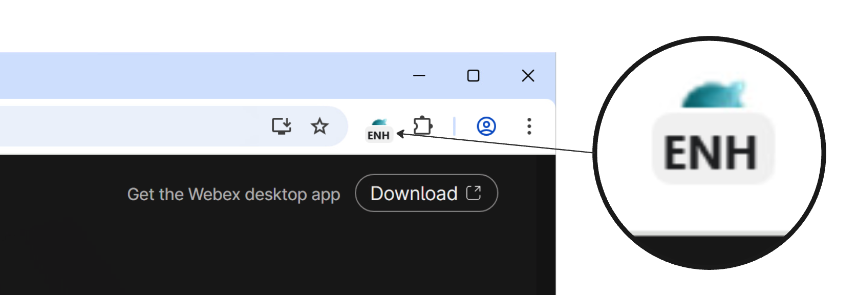 When properly configured, the Omnissa Horizon extension in the browser's toolbar shows ENH (for Enhanced BCR)