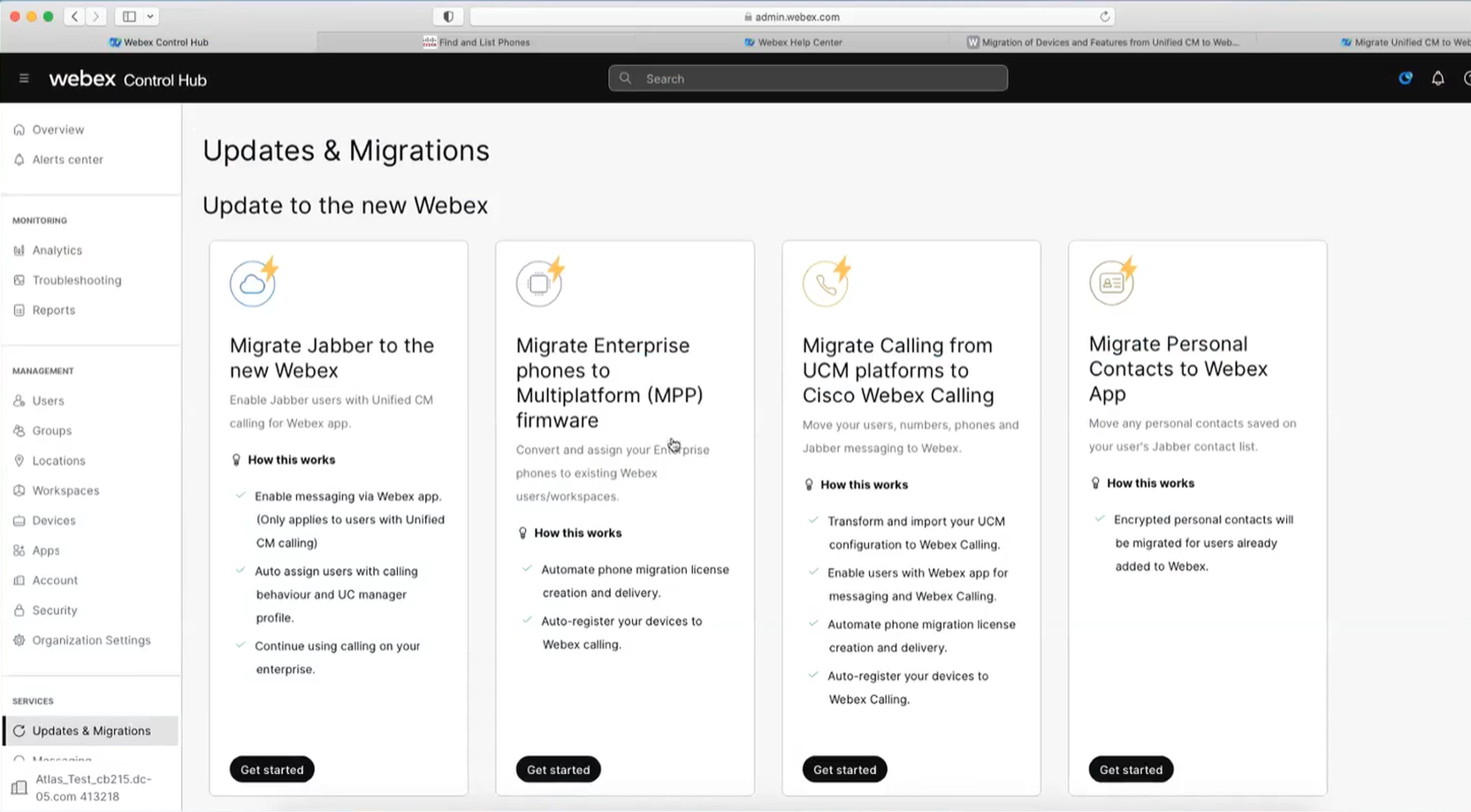 An overview of the Control Hub Migration Tools (focusing more on the tools related to CUCM to Webex Calling cases)