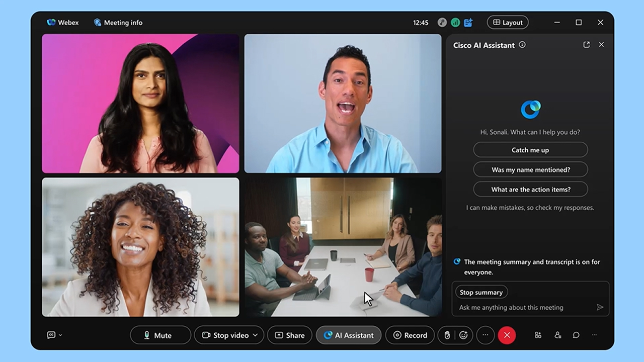 Webex leverer KI-innovasjon innen lyd, video og tekst slik at du alltid yter ditt beste uansett om du støtter kunder, samarbeider med team eller jobber på egen hånd.