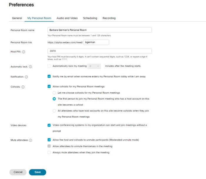 Windows 8-telefoner och Webex Meetings-skrivbordsappen för Linux— Du kan inte starta eller vara värd för ett möte i ditt personliga rum med en Windows Phone 8-enhet eller Webex Meetings-skrivbordsappen för Linux.
