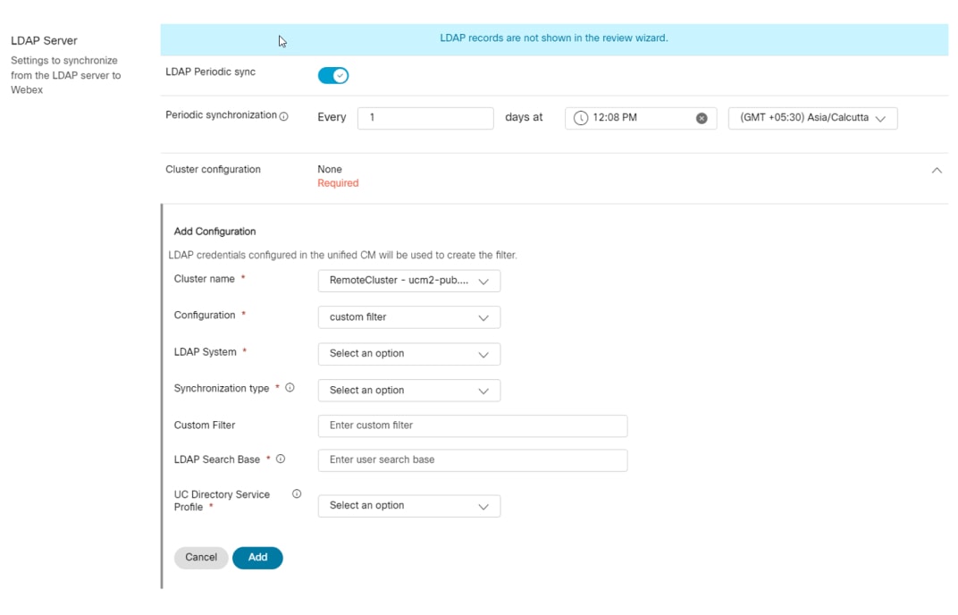 Обов'язкові умови, налаштуйте пошук на серверіLDAP і встановіть свої налаштування - це обов'язкові розділи, які допоможуть вам пройти початкове налаштування для імпорту та синхронізації ваших організаційних контактів у Webex.